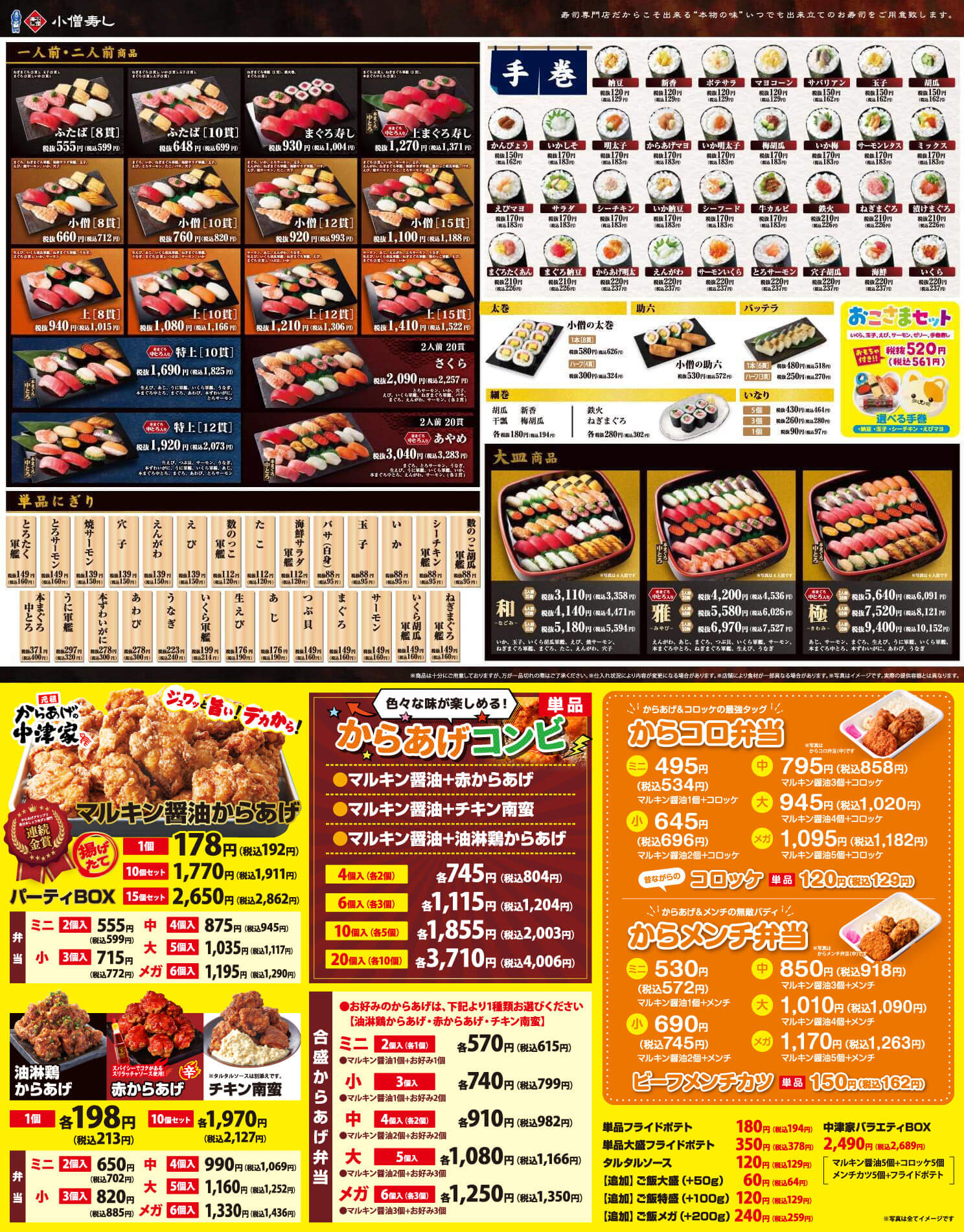 小僧寿し大津ケ丘店の現在の店頭メニュー